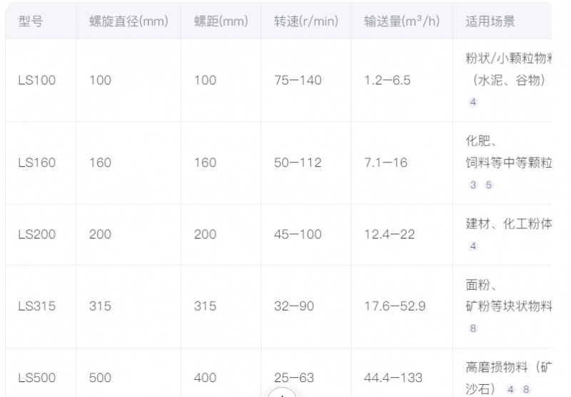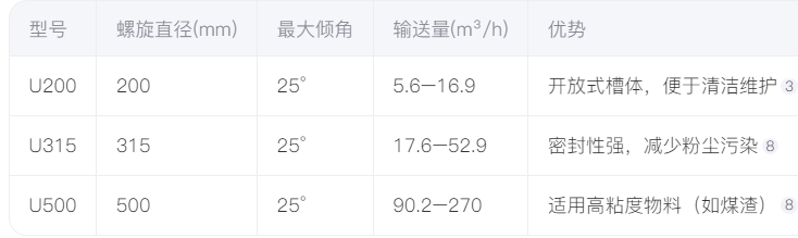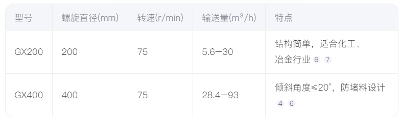 以上參數(shù)均為標(biāo)準(zhǔn)工況值,實(shí)際需根據(jù)物料密度、濕度、輸送距離調(diào)整。螺旋輸送機(jī)安裝限制?:空間狹窄用U型槽(占地小);需垂直輸送時(shí)選專用管式機(jī)型。